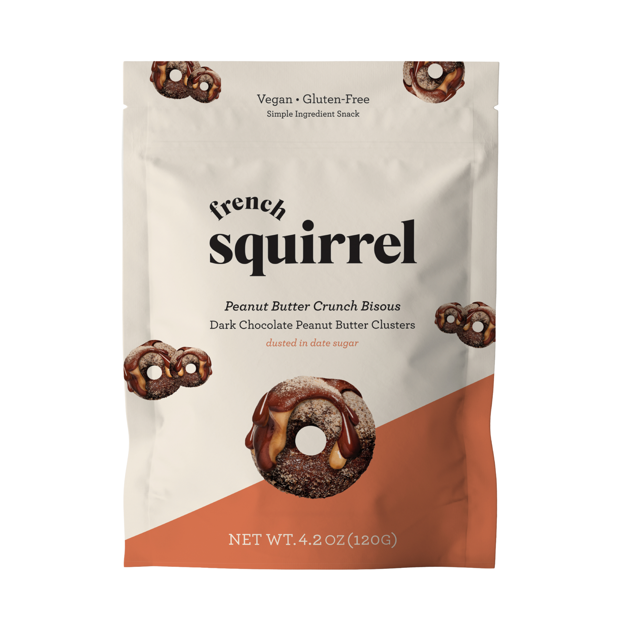 French Squirrel Bisous: Peanut Butter & Chocolate-Coated Gluten-Free Cereal Clusters Bag - 4 Bags case | Farm2Me