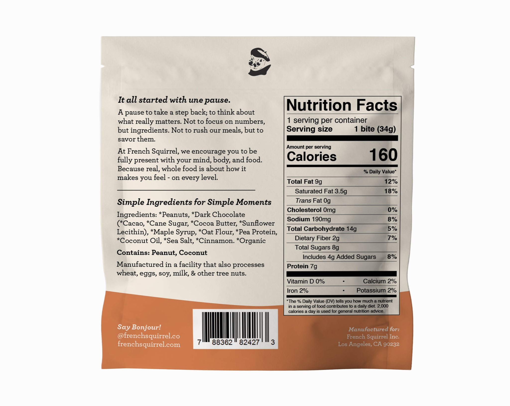 French Squirrel Berets: Peanut Butter Chocolate Protein Bites Pack - 12 Packs x 1 Piece case - Real chocolate melts! Please be sure to add Route shipping insurance to your order and that you are able to refrigerate your order ASAP upon receiving.