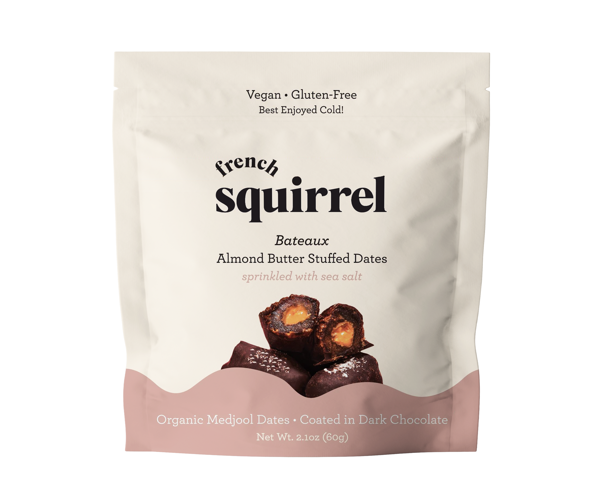French Squirrel Bateaux: Almond Butter Dark Chocolate Stuffed Dates Bag - 4 Bags case | Farm2Me