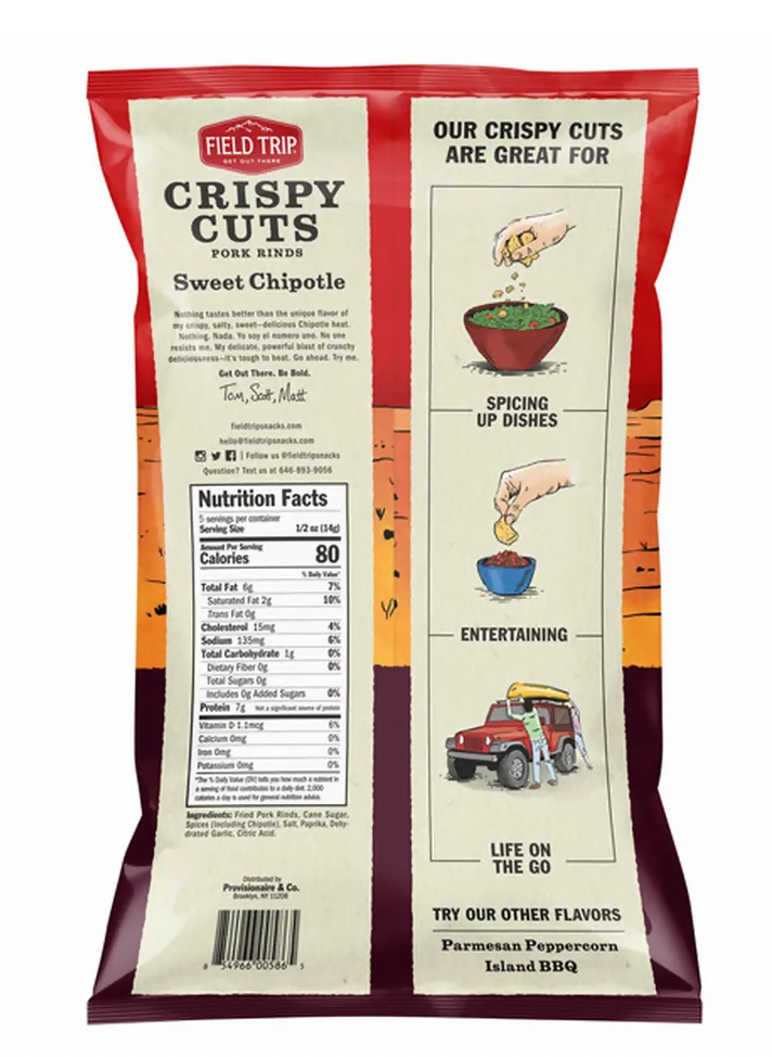 Field Trip Crispy Cuts, Sweet Chipotle Pork Rind 2.5oz bag - 10 bags x 2.5oz case | Farm2Me