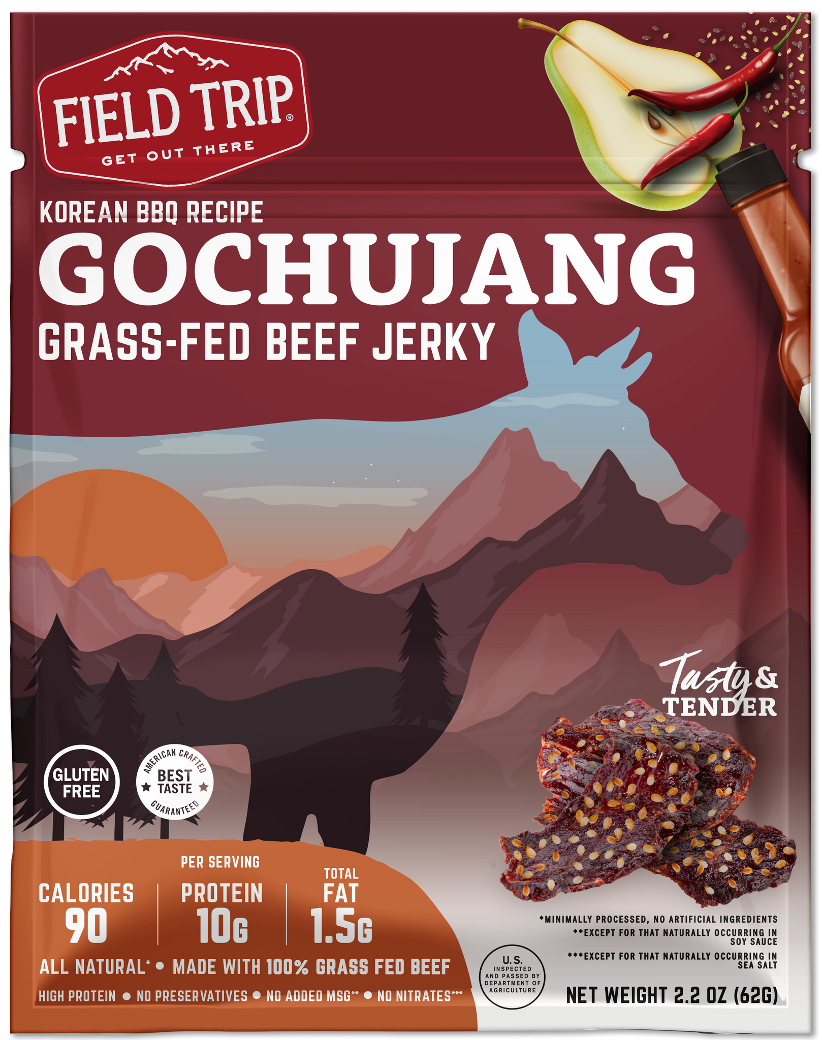 Field Trip Gochujang Korean Style BBQ Beef Jerky 2.2 oz bag - 9 bags x 2.2oz case | Farm2Me