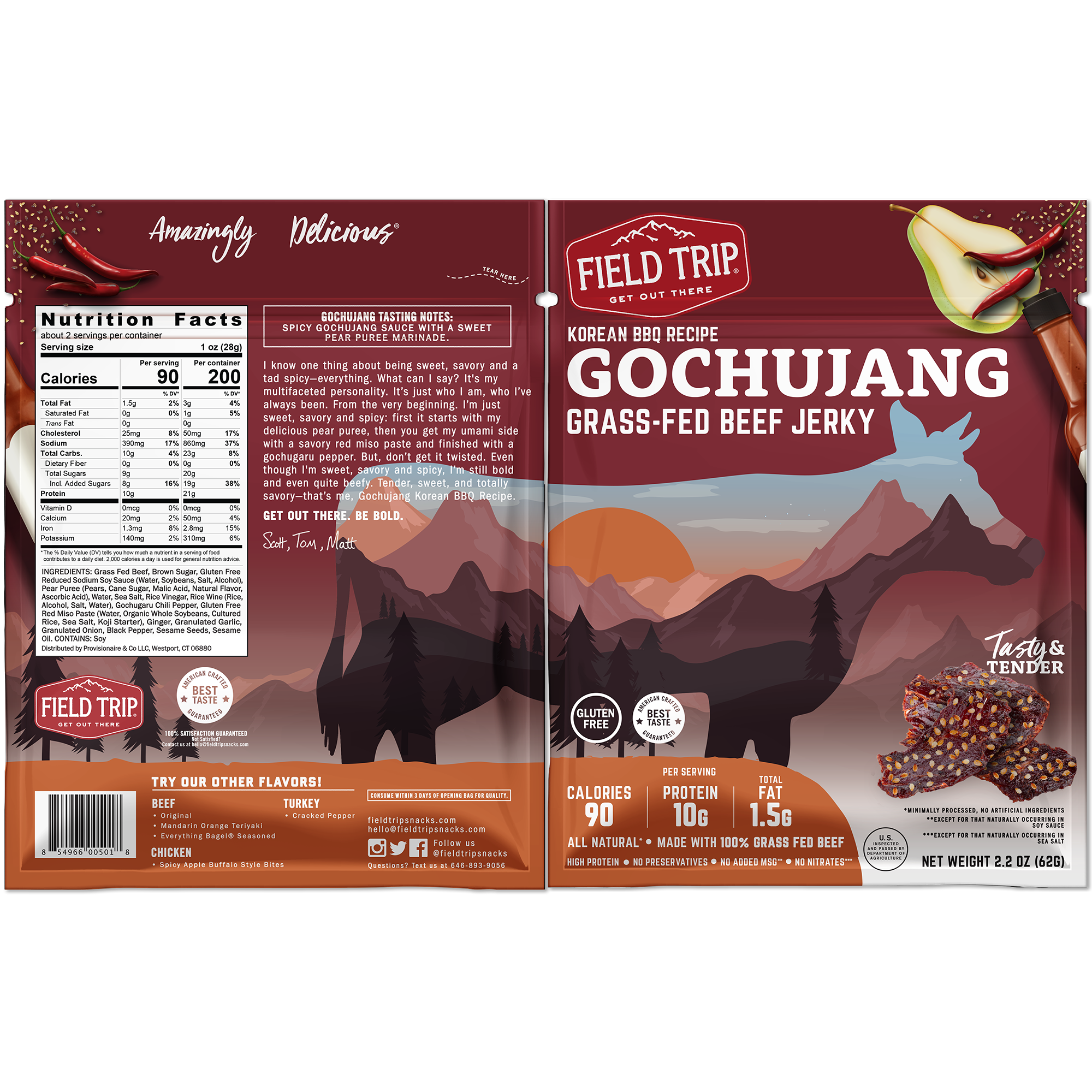 Field Trip Gochujang Korean BBQ Beef Jerky 2.2oz bag - 9 bags x 2.2 oz case | Farm2Me