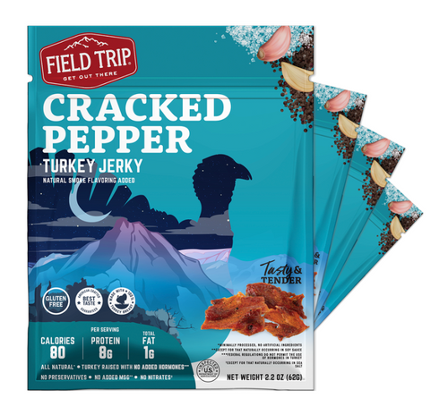 Field Trip Cracked Pepper Turkey Jerky 2.2oz bag - 9 bags x 2.2oz case