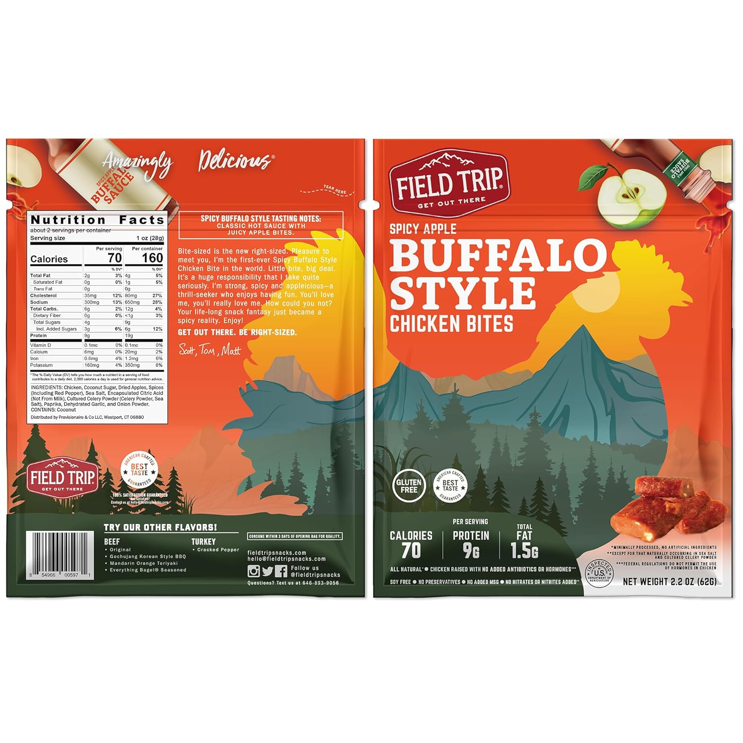 Field Trip Buffalo Style Chicken Bites 2.2oz bag - 9 bags x 2.2oz case | Farm2Me