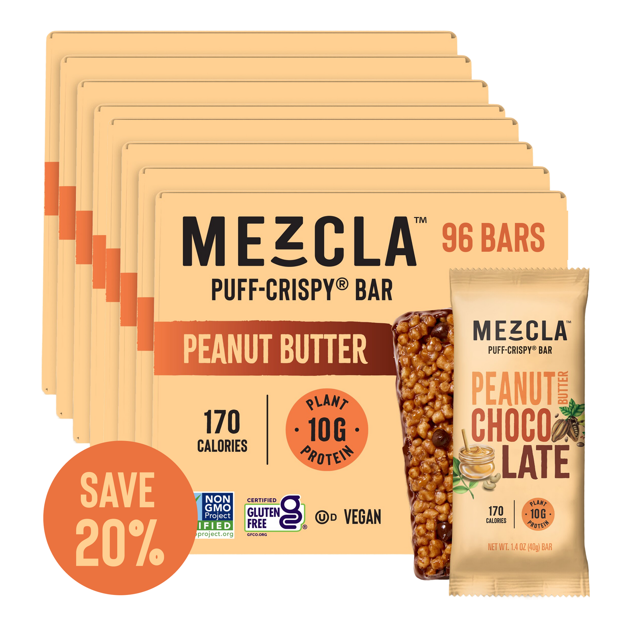 Mezcla Peanut Butter Chocolate Bars - 12 bars x 1.4 oz case are for those of you who aren’t quite ready to totally abandon the classic protein bar flavors you love, Mezcla took the already delicious chocolate peanut butter combo and made it even better in their Mezcla Peanut Butter Chocolate Bars.